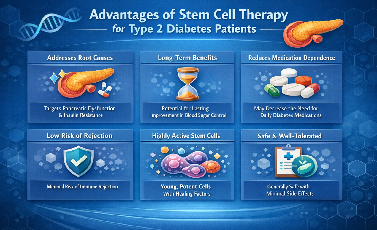Stem cell therapy offers several advantages compared to traditional approaches to diabetes management. One of the most significant benefits is its ability to address the root causes of the disease rather than simply controlling symptoms. By targeting pancreatic dysfunction and insulin resistance, the therapy aims to restore metabolic balance at a fundamental level.