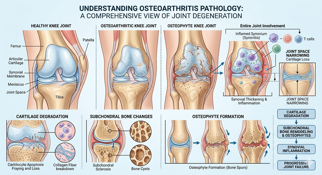 For many people, knee pain is not simply the result of one bad step or after busy day of walking. In many cases, it develops because the joint has been slowly changing over time. This is why Osteoarthritis becomes important. Osteoarthritis was described as “Deterioration,” but that word is antiquated. Current understanding of the condition that affects the entire joint, including the cartilage, the underlying bone, the joint lining, and the surrounding structures. When these tissues change, pain, arduousness, inflammation, and reduced movement can become more visible, especially during weight-bearing activities Regardless of walking, standing, or climbing stairs.